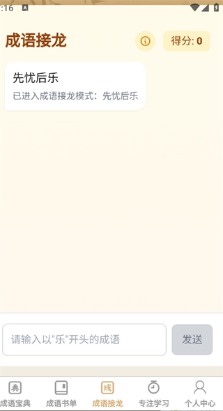 4. 點擊頁面下方的“成語接龍”選項,就能啟動成語接龍小游戲了。