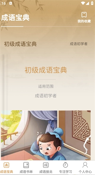 1. 并安裝,在首頁即可看到‘成語寶典’功能,可以根據自身水平選擇不同的教材使用;