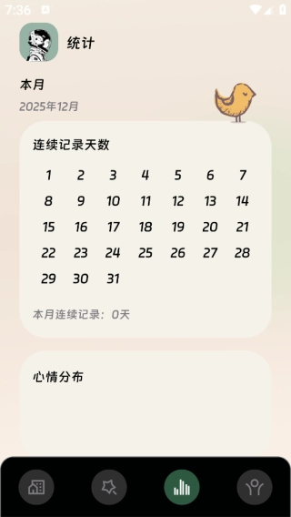 3、點擊【統計】進入,可查看心情記錄的趨勢與歷史情況。